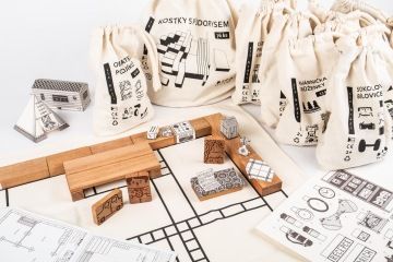 Stavební kostky s látkovou podložkou poslouží k vybudování pokojíků, domů, kaváren a chat. Tématické sety domin pak celou stavbu zútulní a vytvoří příběh, který režírují samotné děti.
