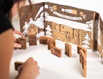 Dřevěné postavičky svázané tradicí, místem a příběhem uložené do krabičky, která se mávnutím kouzelného proutku změní v kulisu.