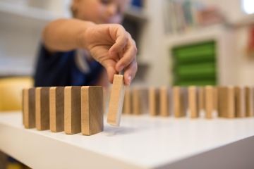 Naše dřevěné kameny jsou navrženy tak, aby se z nich dala naskládat zábavná dominová dráha. Z dominových kamenů můžete sestavovat různé tvary drah dle vlastní fantazie, ale i zkusit podle našich 9 obrázkových předloh s použitím všech 50 kostek udělat třeba hada, šneka, potrubí, emko, aj.