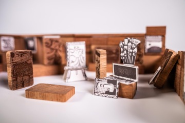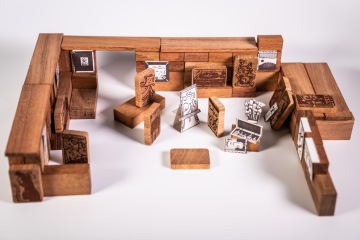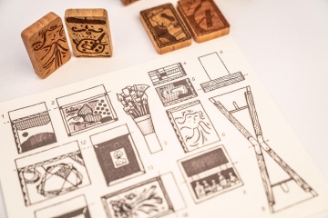 Once you have finished the construction, fill in the place with objects and characters, and make it look nice. Each story has its own picture domino characters. This game set includes the characters of Kamil the painter and his model Flo, an art curator and a friend, who is an art theorist. There is also a sketchbook with a pencil, car, bowl of fruit, baroque clock, gramophone, vase of flowers, mouse and 2 abstract paintings.