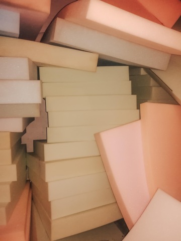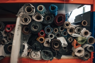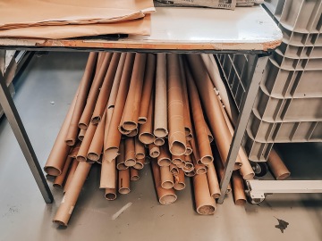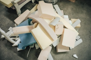 We had a sneak peek into the production of sofas and armchairs, and we discovered leftover fabric and foam scraps, and paper tubes waiting for us. Waste materials. What a challenge! Stay tuned to see the new projects and products we are working on together with Lumco.