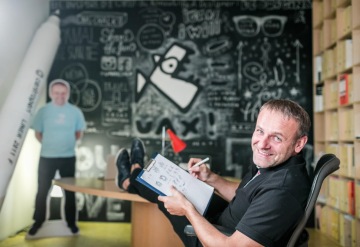 Radek Leskovjan (1974) is a graphic designer and owner of the UAX! brand. His world revolves around design and drawings that are funny, playful and responsible at the same time. His personalised motifs and corporate visual identity designs are very popular among companies like Hyundai, Kovocité or Mrózek.
