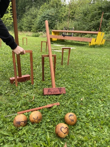 Kroket zdobený hravými a veselými kreslenými postavičkami. Zahradní hra, která potěší děti i dospělé.