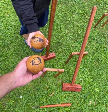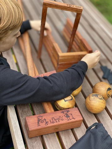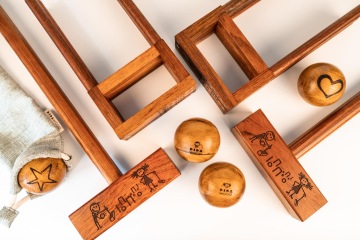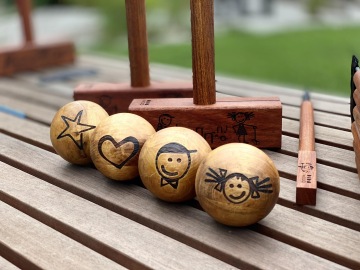 KOULE jsou vyrobeny z evropské dřeviny akátu. Dřevo je díky své houževnatosti a tvrdosti těžké, vhodné pro dobrý odpal. Symbol na kouli je umístěn na 2 stranách, aby byl při hře dobře rozeznatelný. Díky tomu, že se produkty vyrábí máloseriově, vzniká prostor pro limitované edice piktogramů - symbolů.
