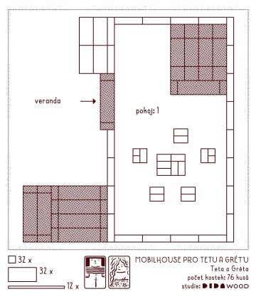 Půdorys pokoje v mobilhousu u tety a Gréty
