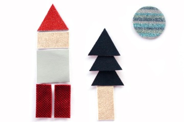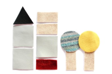 * Poskládej si svého textiláka, domek nebo rovnou velkoměsto! Látka se také může nalepovat na papír, dřevo, další látku atp.