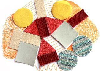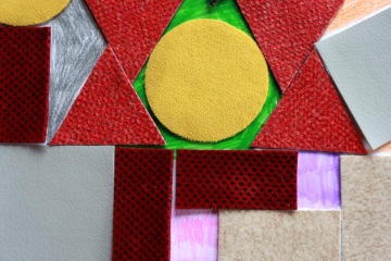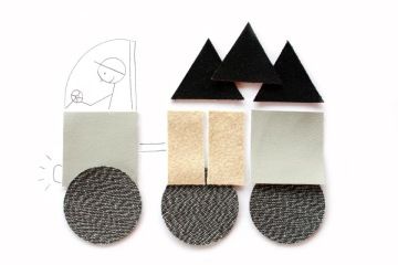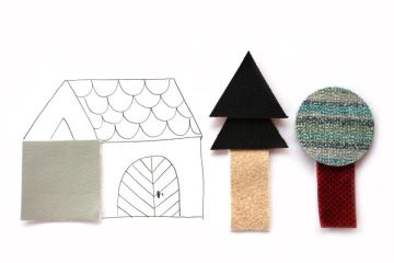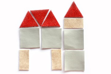 Celou plochu papíru zaplň stavbami, které postavíš z přiložených tvarů textilu. Anebo vytvoř jeden velký dům. Nakonec můžeš dokreslit obyvatele ... budou to