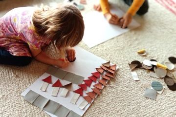 Poskládej si z tvarů dům, stromy, květiny, ptáčky, traktor, auto, panáčka nebo loďku na moři. Jednotlivé tvary nalep na papír a obrázek podle potřeby