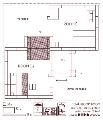 Půdorys čajovny Tchaj room boom
