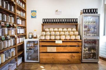 V naší bezobalové prodejně si můžete nakoupit do vlastních nebo vratných obalů širokou škálu jak trvanlivých tak čerstvých potravin. Od poctivého celozrnného pečiva přes mléčné i masové výrobky přímo z farmy, lokální výrobky jako kvašená zelenina, sirupy a džemy, čaje, med, čerstvě upraženou kávu … až po běžné potraviny do vašeho špajzu, které nám dovážejí dodavatelé ve velkoobjemových a vratných obalech. Dále nabízíme drogerii na váhu a přírodní kosmetiku rovněž ve vratných obalech či do vlastního 😉 V neposlední řadě si u nás vyberete spoustu užitečných pomocníků do eko domácností, které vám nahradí ty jednorázové!