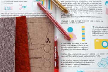 Mini časopis s příběhem a popisem, vystřihovánka, modní návrhy, ale také různé druhy látek nabízí velké množství kombinací!