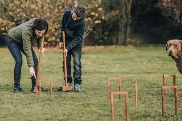 Něco bychom pro vás měli. Z původního zahradního kroketu vznikl golf kroket s pravidly dotaženými a svižnými. Nabízíme dvě sady kroketu, s jedním či dvěma kladivy, vakem a návodem s pravidly hry.