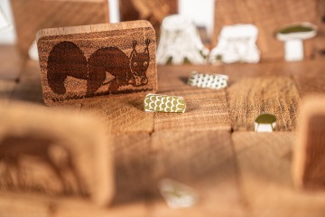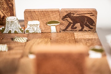 Když máte postaveno, můžete začít stavbu zaplňovat a zkrášlovat. Každý příběh má své postavy v podobě obrázkových domin. Tato herní sada se pyšní myslivcem Běhounkem, klukem Toníkem, psem Jiskrou, sovou, liškou, medvědem, mraveništěm, datlem, srnou, zajíc, jezevcem, divočákem, pavoukem a veverkou.